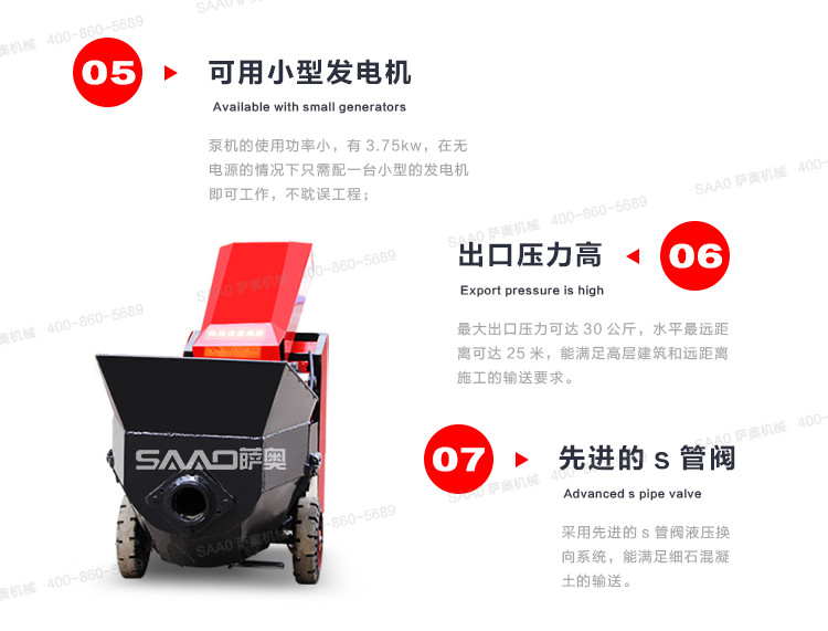1,采用先进的S管阀换向,能满足细石混凝土输送。