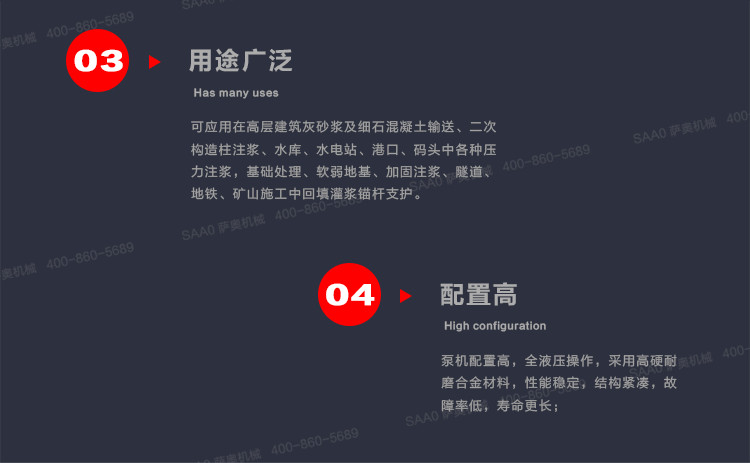 3,出口压力高,能满足高层建筑和远距离施工的输送要求。