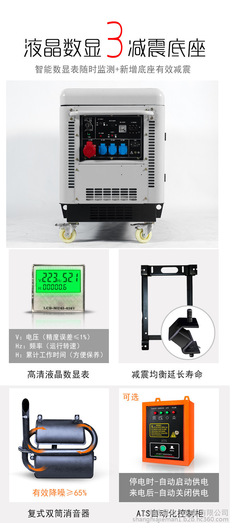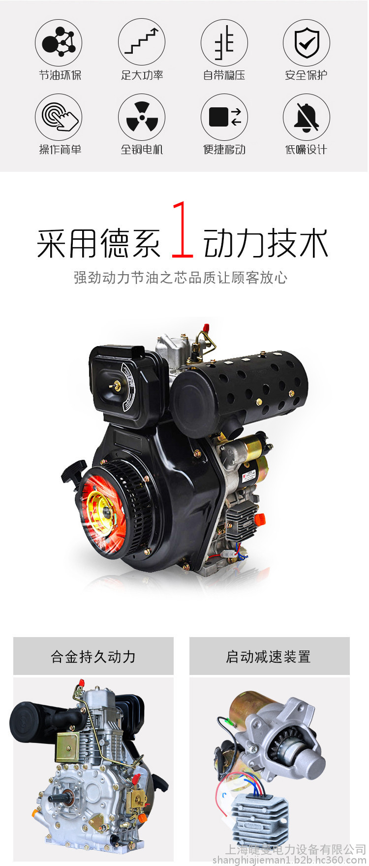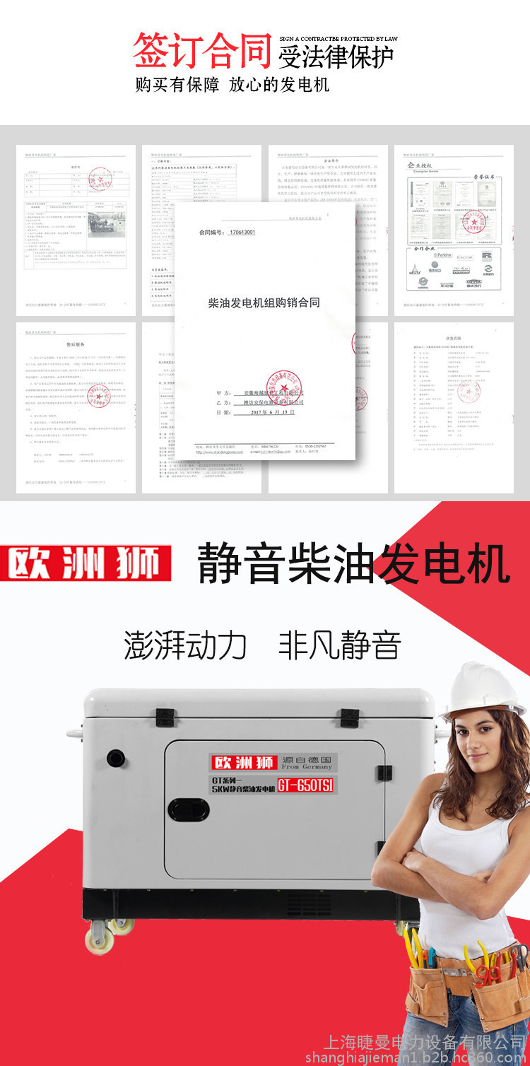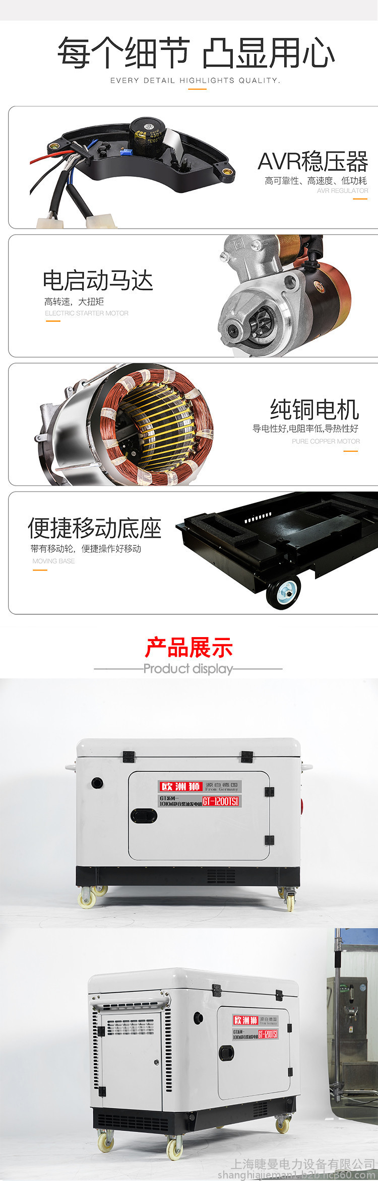优良的品质,完全适合家庭紧急使用,机器本身自静音罩,将消除麻烦你在使用的过程中噪声在燃烧室燃烧效率高,噪音低,稳定的电压,良好的起动性能,运行可靠,低排放,低噪声,容易维护,低油耗、燃油,价格合理