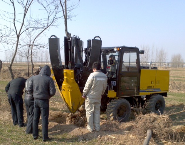帝盟”牌移树机是恒特重工**产品**,已申报16项**,其中4项发明**,拥有自主知识产权,并一举荣获“2013装备中国创新先锋榜·产品创新奖”。 “帝盟牌”移树机下设的三种型号:“DM-A” 移树机为小型产品,配备挖树土球直径为60、80、100cm的三种荷花铲;中型产品“DM-B”移树机,配备挖树土球直径为120-150cm的二种荷花铲;大型产品“DM-C”移树机,配备挖树土球直径为180-220cm的二种荷花铲。产品的设计理念为:节能、环保、美观、舒适、灵活、机动,采用轮式结构,时速分别为35 KM/h 、60KM/h和80KM/h。其中,“DM-A”移树机性能卓越,挖树效率比人工高20-30倍,平均3-5分钟能完成一棵8-15公分树木的移动;研制的**铲刀锋利耐损,可对树根进行**小创面切割,避免了因人工刀**剁,而造成的伤根多、苗木成活率低等现象。公司**研制的土球专用包装袋保湿透气性好,而且成活率比人工提高了10%以上,DM-A移树机凭借较高的机械灵活性,能在3*3米的树林中自由穿梭,工作十分方便。