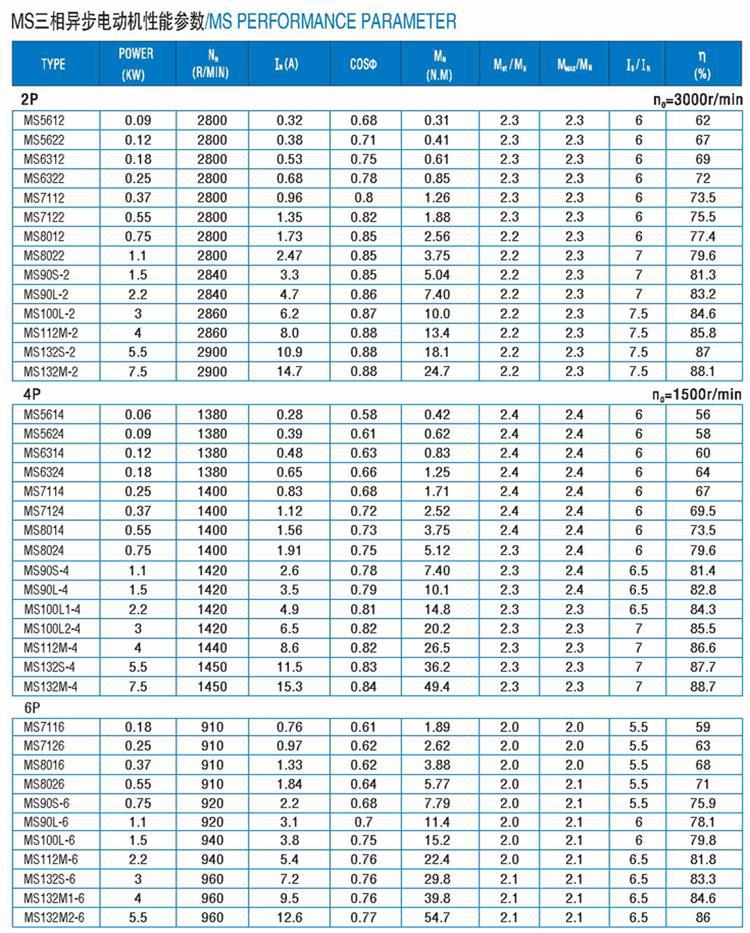 --从0.025KW-7.5KW的功率等级范围,9种机座规格.