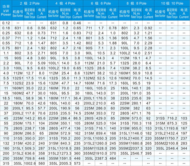 YVF2系列变频调速三相异步电动机(中心高H63-355mm, 0.12-315kw),是新一代系列产品。本系列电动机集国内外同类产品之优点,采用计算机辅助设计,通过对定、转子槽形和定子绕组分布形式进行合理科学的设计,选择合理的电磁负荷,很好地抑制和减小了谐波和由其引起的一系列电机谐波所产生的不良影响,既实现电机在低频运行时(频率≤50Hz) 1: 10调速范围内作恒转矩平稳运行且无转矩脉动现象,又能保证电机在高频时的过载能力。本系列电动机调速范围宽、振动小、噪声低。