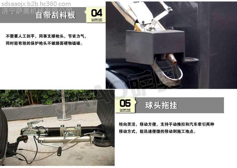 ??5、灌缝枪把人性化手柄设计,在灌缝枪把手上装有电控开关,可远程控制沥青泵,避免浪费,卫生、清洁;