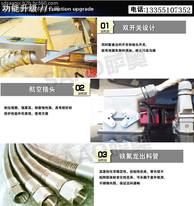 ??2、全程电加热出料软管,免清洗,弯折度充分**满足横向、纵向裂缝的多项施工需求,以保证**大施工面积;