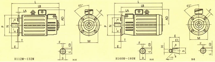 IM1001、IM1003及IM1002、IM1004,机座带底脚,端盖凸缘的YZR系列电动机