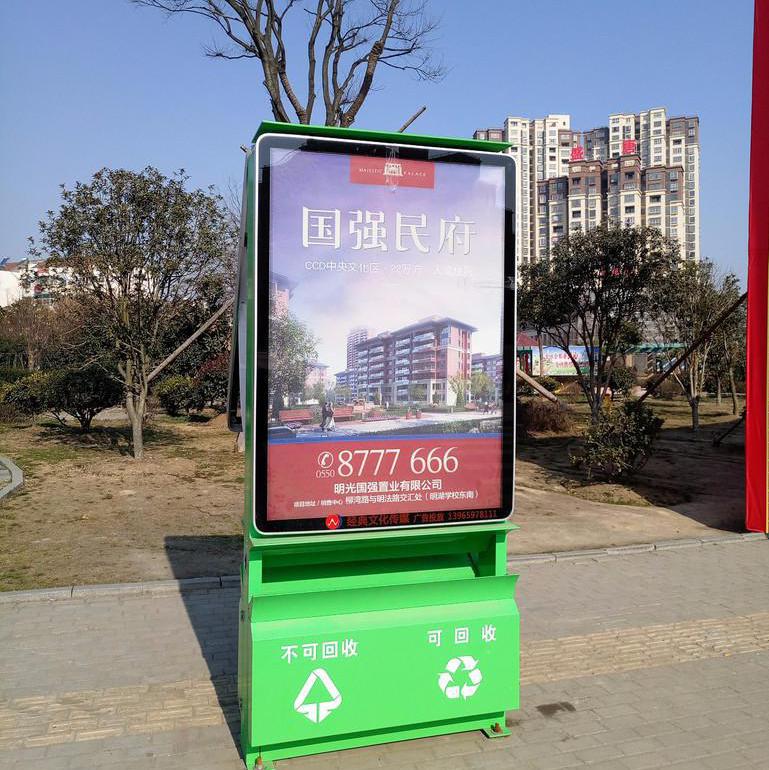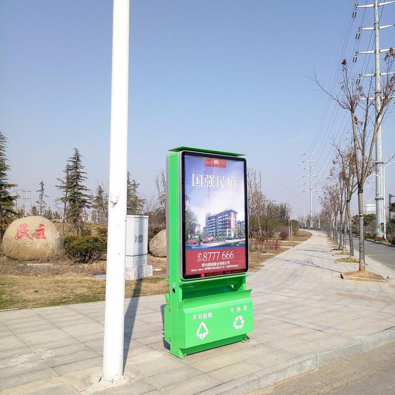 功能配置:废旧电池回收、烟灰缸、垃圾分类、WIFI覆盖、手机充电、天气预报、动态画面展示、太阳能供电。