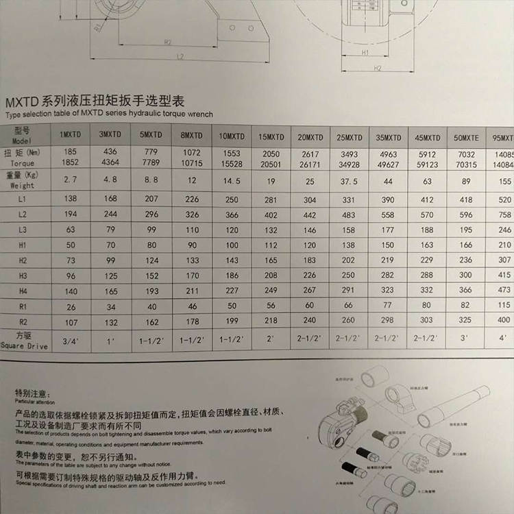 液压扭矩扳手本体液压扭矩扳手的本体主要由三部分组成,本体(也叫壳体),油缸和传动部件。油缸输出力,油缸活塞杆与传动部分组成运动副,油缸中心到传动部件中心距离是液压扳手放大力臂,油缸出力乘以力臂**是液压扳手理论输出扭矩。