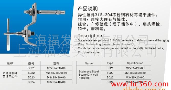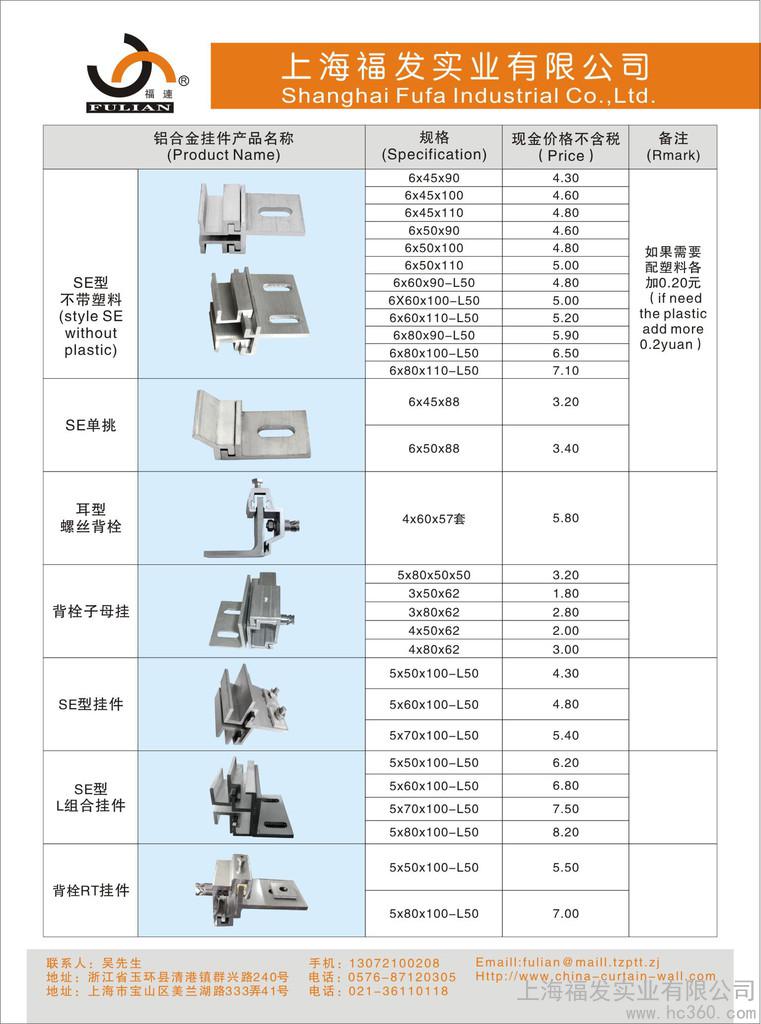 主要产品有:建筑幕墙五金零配件,石材幕墙干挂件,SS316-SS304不锈钢挂件,铜镁铝合金T型挂件,6063-T5字母干挂件,6063-T5背栓干挂件,6063-T5 SE组合干挂件,6063-T5 SE型干挂件,陶瓷板挂件等所有产品均可以来料加工,来样生产。
