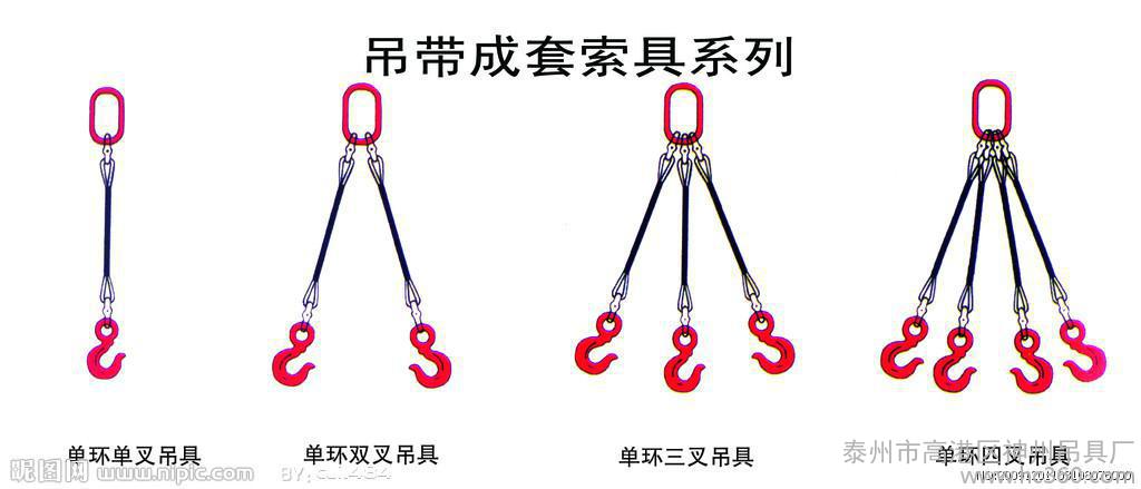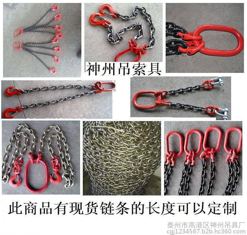 一腿链条成套索具、二腿链条成套索具、三腿链条成套索具、四腿链条成套索具、可调式特种吊具、链条捆绑式索具、可调式卷纸吊具、可调式捆绑索具、双腿捆绑式索具、可调式四腿索具(带调节器)、四叉链成套吊索具、双环起重吊链。特殊规格可根据用户图纸进行生产。