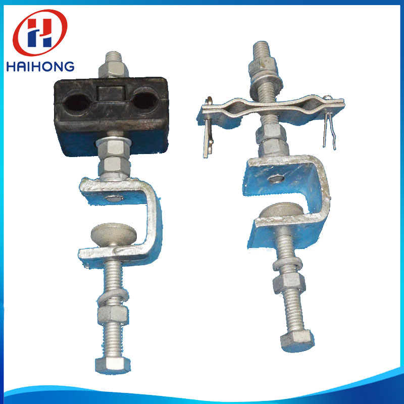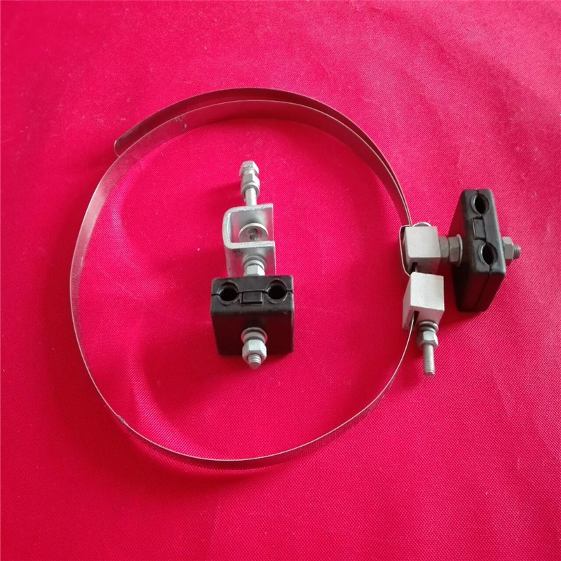用途:引下线夹夹具主要用于ADSS及OPGW光缆在杆塔上引线时的固定安装。如,在光缆接头杆(塔)处,光缆从夹持金具引到接续保护盒安装处的固定作用;光缆从杆塔上引下到地下管道,电缆沟、直埋,以及引下进入机房等处的固定。避免光缆在风力作用下与杆塔或其他物件摩擦而损坏光缆,以保护光缆的安全。