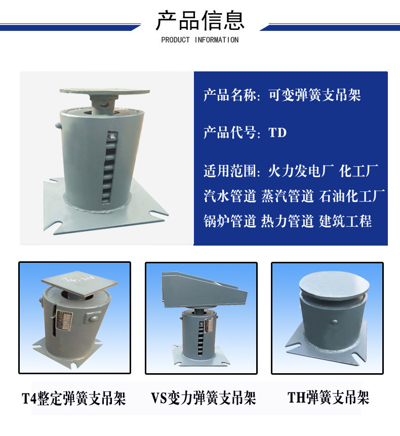 恒力弹簧支吊架PHD主要作用:固定框架底板安装在支承构件上,悬吊下面管道和设备