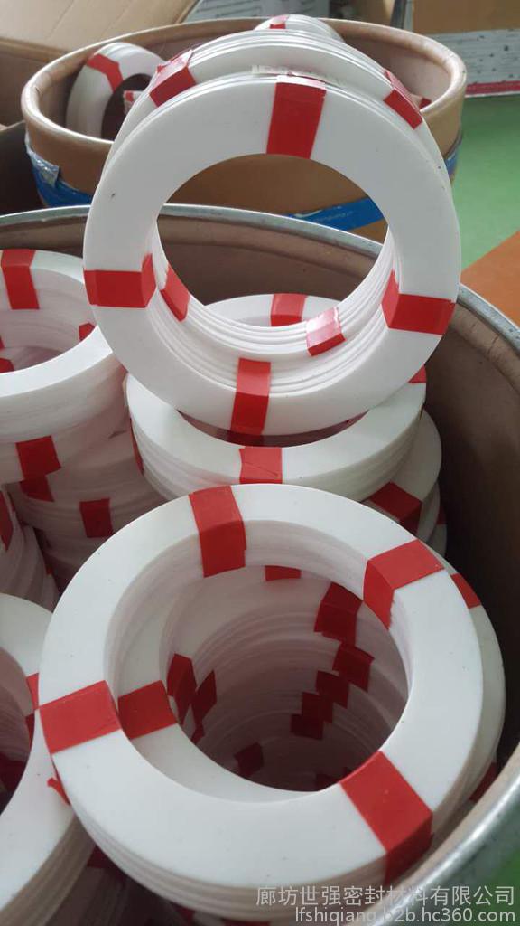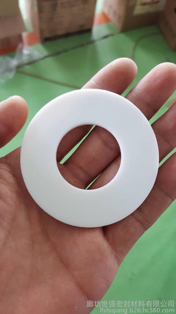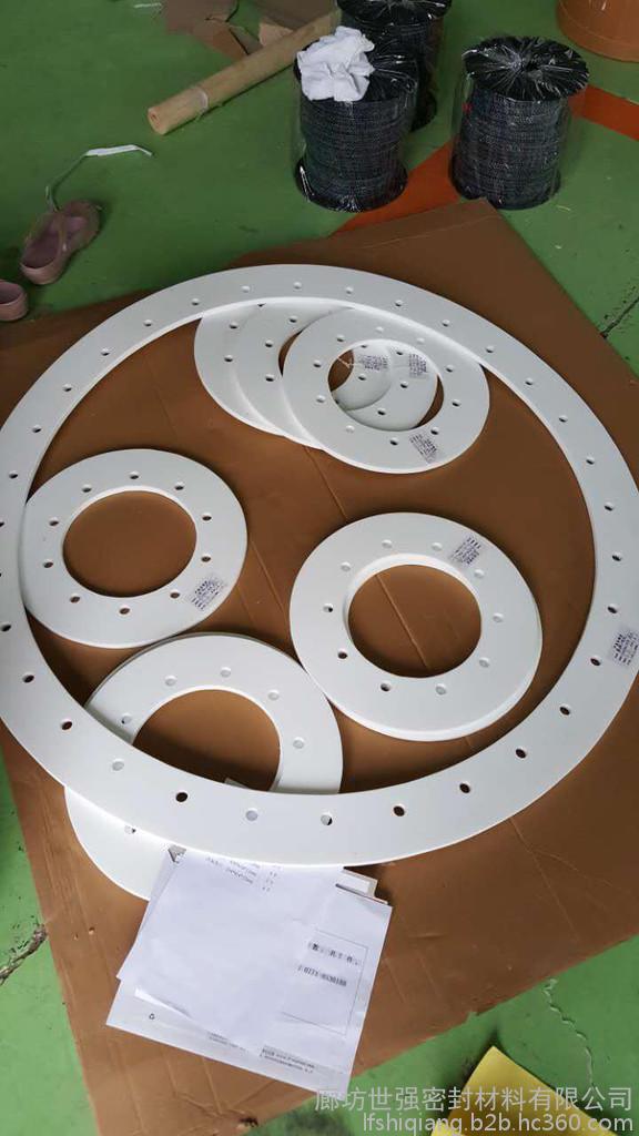 白色四氟垫片我公司的四氟垫片都是用聚四氟乙烯纯料配合模具模压高温烧结而成的,其中不含再生聚四氟乙烯废料成分,并且聚四氟乙烯料的含量远高于市场上出售的聚四氟乙烯板材。大部分标准尺寸的垫片,如ASME B16.21,DIN 2690,HG20606-2009钢制管法兰用非金属平垫片(欧洲体系),HG20627-2009标准钢制管法兰用非金属平垫片(美洲体系),GB/T9126-2003管法兰用非金属平垫片的垫片等标准。