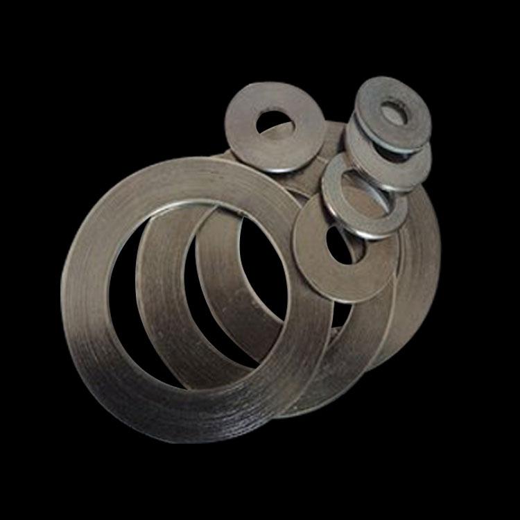 自动调整,特别适用于负荷不均匀、接合力易松弛,温度与压力周期性变化、有冲击或震动的场合。是阀门、泵、换热器、塔、人孔、手孔等法兰连接处的静密封原件,广泛地用于石化、机械、电力、冶金、造船、医药、原子能和宇航等部门。 在法兰垫外观设计上为了安装方便,根据垫片口径大小,在垫片外围焊上2~8个定位带,让定位带扣在法兰孔上,以防安装时垫片移位或脱落,节约了辅助材料及工时.一般分为以下几种类型: 金属缠绕垫片采用**SUS304、SUS316(“V”形或“W”形) 金属带及其它合金材料与石墨、石棉、聚四氟乙烯垫片、无石棉等软性材料相互交替重叠螺旋缠绕而成,在开始及末端用点焊方式将金属带固定。金属缠绕垫片为半金属密合垫中回弹性**的垫片,金属缠绕垫片结构密度可依据不同的锁紧力要求来制作,并利用内外钢环来控制其**大压紧度,缠绕垫片接触的法兰密封面的表面精度要求不高。金属缠绕垫片特别适用于负荷不均匀、接合力易松弛,温度与压力周期性变化、有冲击或震动的场合。缠绕垫片是阀门、泵、换热器、塔、人孔、手孔等法兰连接处理想的静密封原件。 缠绕垫片应用范围: 石油、化工、冶金、电力、船舶、机械等行业的管道、阀门、压力容器、冷凝器、换热器、塔、人孔、手孔等法兰连接处密封。 金属缠绕垫片的种类: 种类断面形式代号厚度基本型缠绕垫片 A3.24.5带内环缠绕垫片 B 4.5带外环缠绕垫片 C 4.5带内外环缠绕垫片 D 4.5 金属缠绕垫片的结构材料: