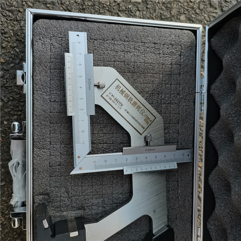 钢轨磨耗测量尺,钢轨磨耗测量仪,数显式钢轨磨耗测量尺(以下简称“磨耗尺”)用于钢轨垂直磨耗和侧面磨耗量的检测。垂直磨耗测量位置在钢轨面面宽1/3处,侧面磨耗测量位置在钢轨踏下16mm处。