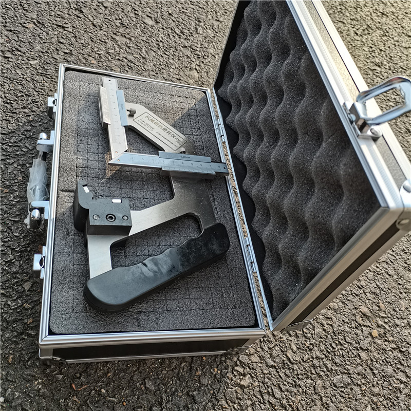磨耗尺主要由底板、磁性定位块、垂磨测尺、侧磨测尺、数显读数装置、手把等组成。