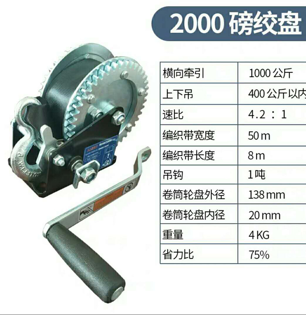 手摇绞盘优点:1、当需要各种救优点援工作的时候,手摇绞盘是车载绞盘外的另一个选择