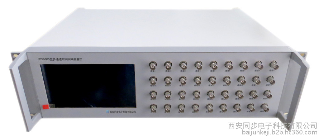 SYN5605A型数字式时间间隔测量仪是由西安同步电子科技有限公司精心设计、自行研发生产的一款高精度时间间隔测量仪,本产品是根据《时间间隔测量仪》检定规程的要求制作的一款多功能,高可靠性,专用的精密时差测量仪器。采用高稳定度恒温晶振作为时间基准,使用7寸大液晶触摸屏,采用大规模集成电路FPGA技术,全数字控制,实现高精度时间间隔测试,整机具有高稳定度、高准确度的优点,功能完善,操作方便,抗干扰能力强。