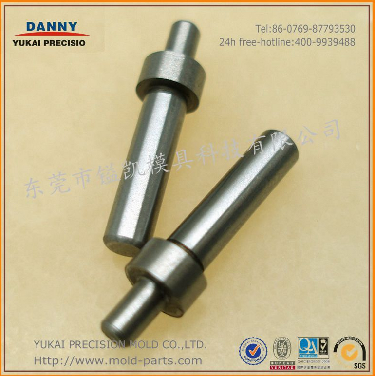 高速钢直推杆、阶梯推杆(托针)、真空推杆(真空顶针)、扁推杆、推管、型芯、半导体零件、浇口相关零件、导向定位零件、铍铜针等。精密产品同轴度可达0.005mm : 斜导柱、导柱、导套、支撑柱、定位柱等。精密产品公差可控制在0.005mm范围内、点式唧咀、定位圈、辅助器;自润滑导套、铜导套、耐磨板、耐磨块、日期章、定位柱、方形輔助器等。