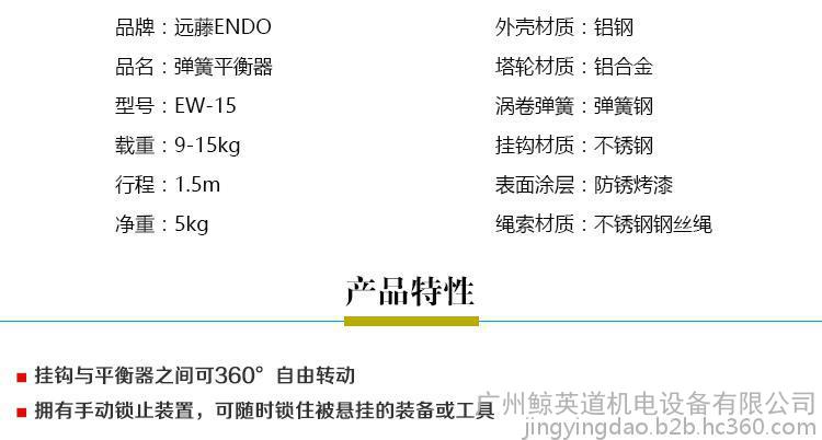 远藤ENDO弹簧平衡器可用于汽车装配行业、电批风批悬挂辅助、轨道滑车搬运操作等,用途广泛,使用方便,省时省力。我们的弹簧平衡器质量上乘,可替代日本ENDO,如果需要日本原装ENDO弹簧平衡器,我们也有供应,欢迎来电详询,订购热线:18902290791 夏经理 客服QQ:121692548 更多规格型号请访问鲸英道官网//www.jinind.com/lifting-hydraulic/endo/