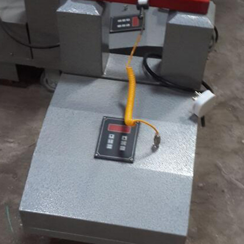 7、根据不同规格的轴承或其它工件,选择不同的轭铁套上,将此轭铁放在主机的顶部端面上,应吻合平整。