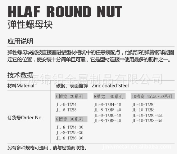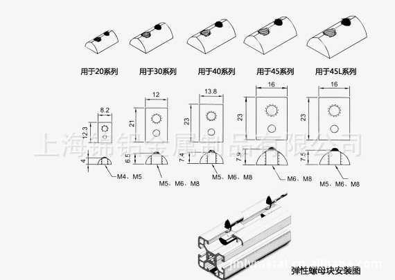 弹性螺母块不同规格适用的型材: