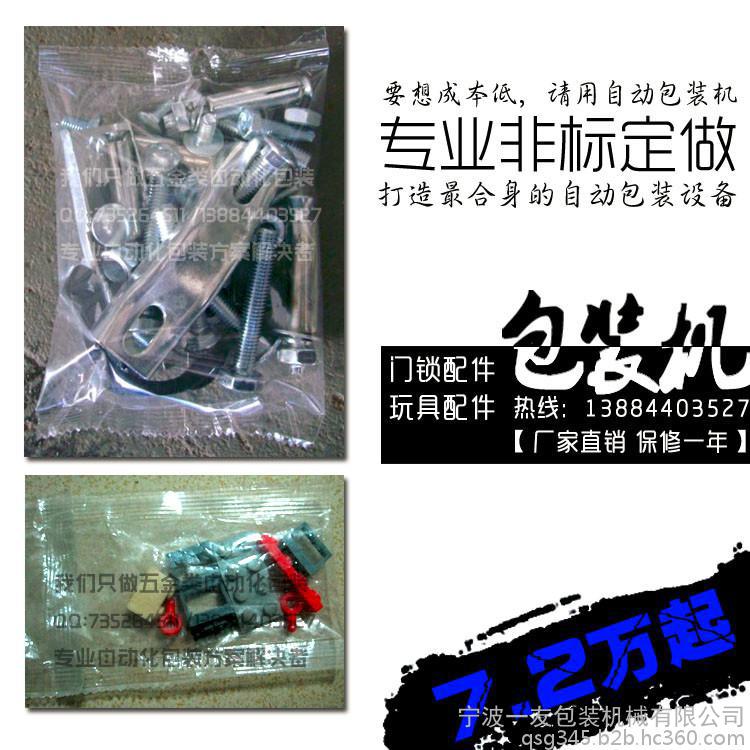 适用范围:适合于电器、灯饰、五金装饰产品的附属安装螺丝、螺母、小塑胶件,螺丝钉、螺母、膨胀管、五金类小配件等(适应汽配、洁具卫浴、锁具等行业)的自动包装。
