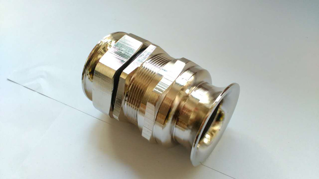 铜镀镍防爆接头,又称防爆格兰头或防爆电缆固定头,防爆铜材质精制而成,具有独特的防爆功能,特殊夹紧爪与夹紧圈之设计,夹紧电缆范围大,抗拉力特强,可防水、防尘、抗盐、耐弱酸、油、油脂及一般溶剂。铜镀镍防水接头出线口一端可将进出电缆锁紧并起到防水防尘、防震动的作用,另一端可接入设备箱体上,也可以根据选用螺纹。接入进出口为内螺纹的电动设备上。