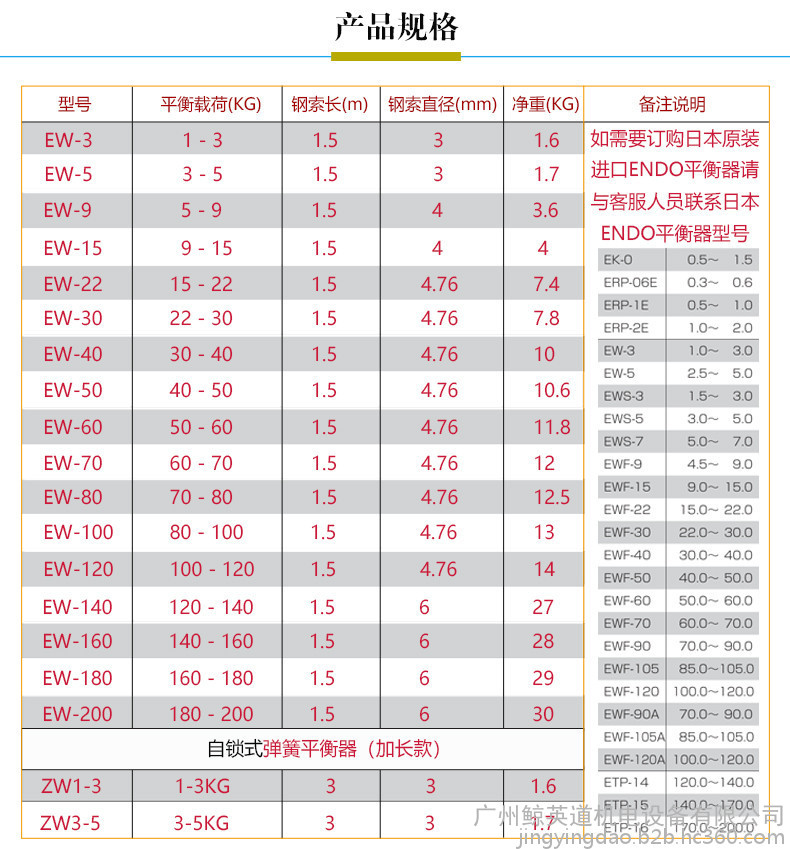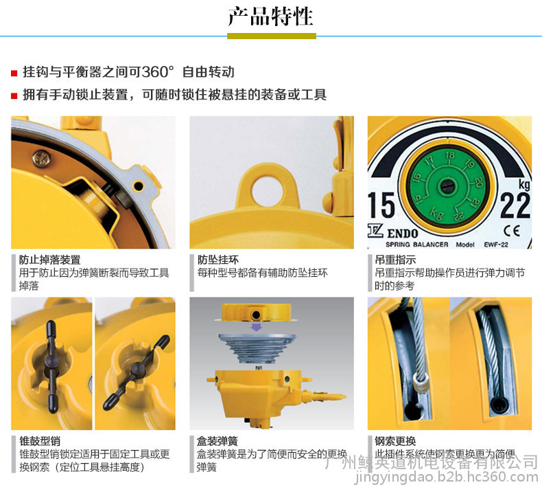 远藤弹簧平衡器EW-30弹簧拉力吊ENDO平衡吊22-30KG弹簧吊钩汽车装备吊具塔式弹簧平衡器EWF型弹簧平衡器