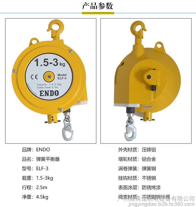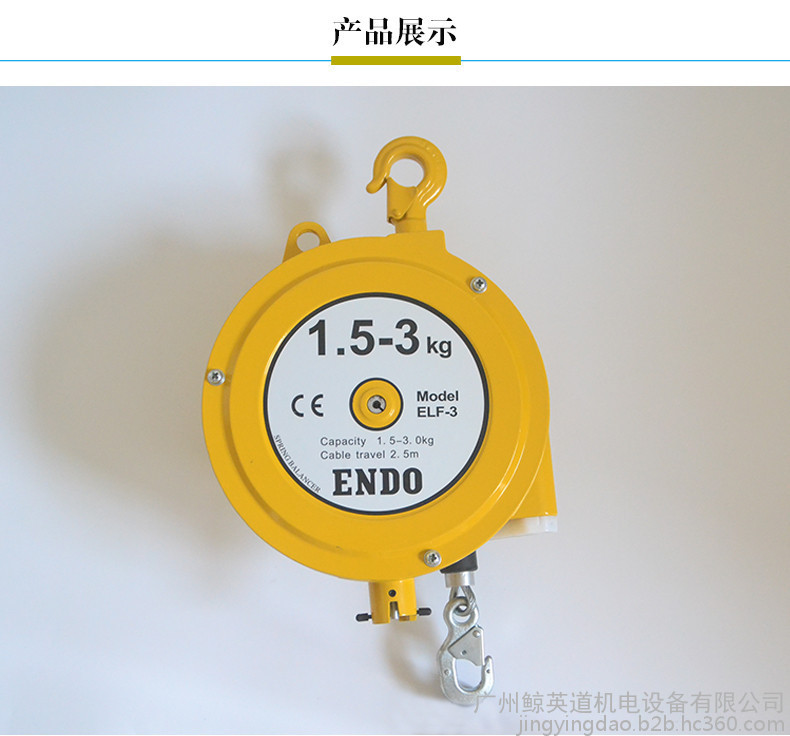 日本ENDO弹簧平衡器ELF-3远藤平衡吊1.5-3kg加长型电批弹簧平衡吊钩2.5米
