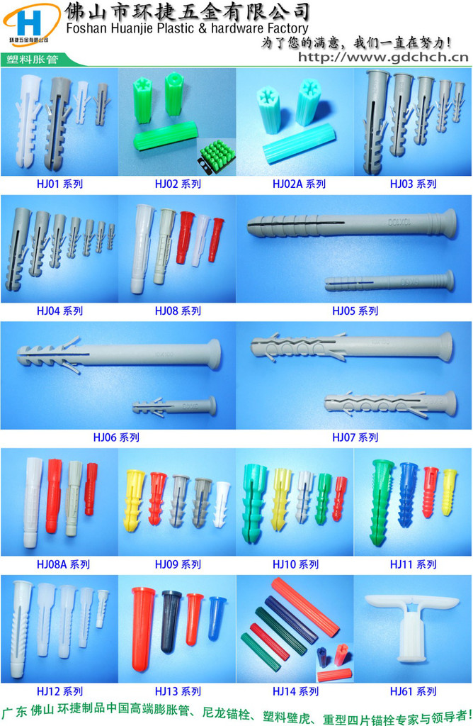 塑料膨胀管,鱼形膨胀管,塑料膨胀螺丝,塑料膨胀螺栓,胶粒,墙塞,适用于各行业的安装配套使用,塑料膨胀管代替了木膨胀管的各种缺点,塑料膨胀管由PE料注塑成型特点:弹性好,拉力好、耐冲击、不破裂、硬度强、不生锈、弹力大可防止本身在墙孔滑动,产品美观实用、体积小、荷载大、用途广、使用安装准确快捷、提高工效和安装质量.使用方法:将膨胀管迫进事先钻好适配膨胀管大小的墙孔,用自攻螺丝攻入膨胀管胀大了它形成了膨胀管与墙壁螺丝相莲压迫锁紧了螺丝,使螺丝可以紧固安全地固定吊或挂物品。