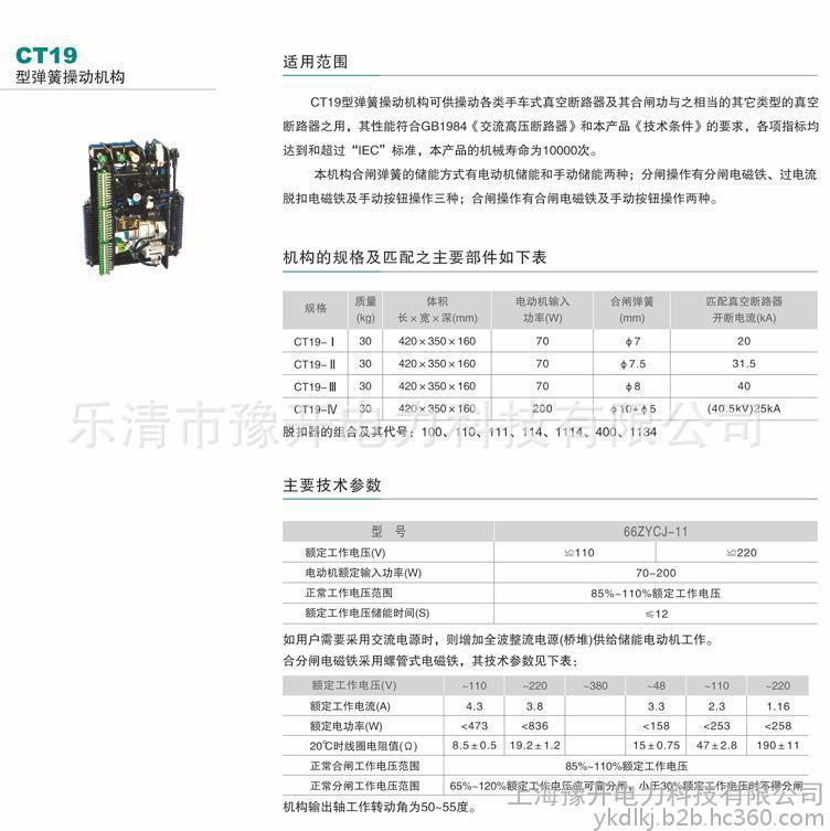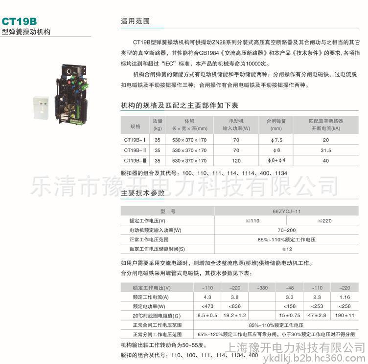 豫开CT19B 高压弹簧式操作机构 CD17高压操作机构 CT8高压操作机构 CT10-114弹簧操作机构
