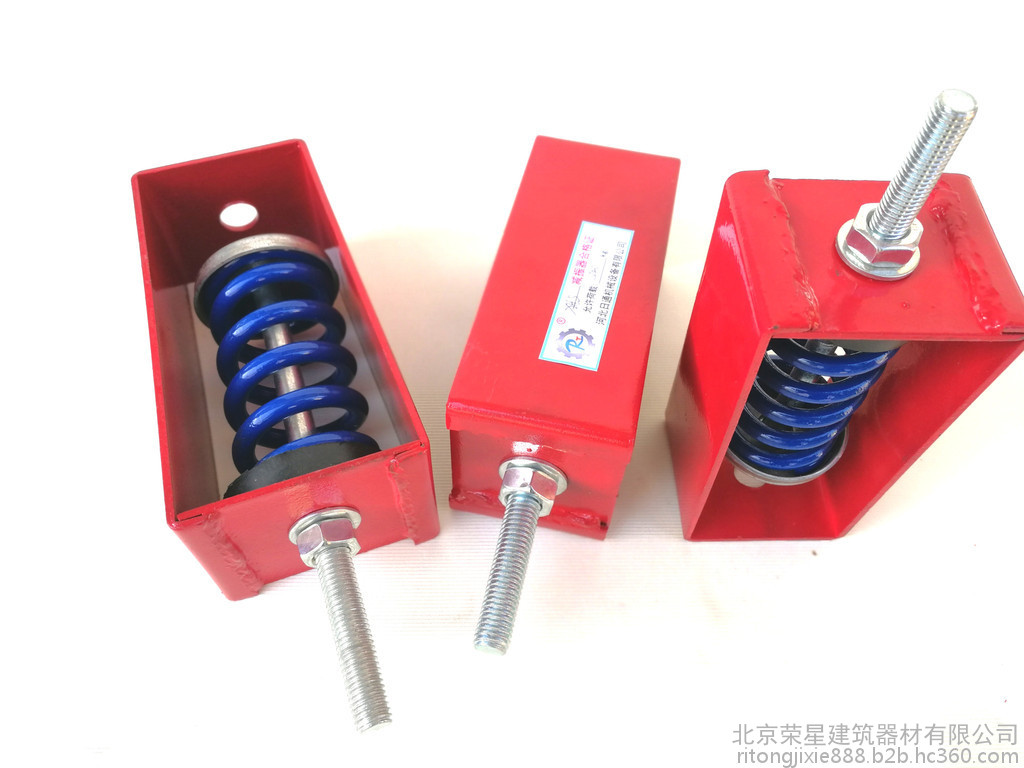 吊式弹簧减震器由减震器钢架、螺旋弹簧、阻尼块组合而成。