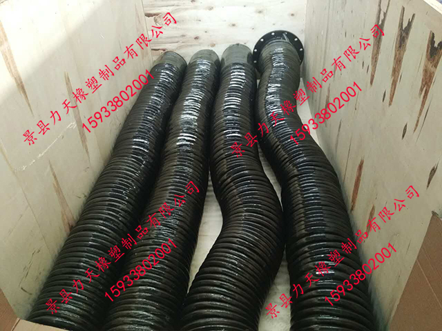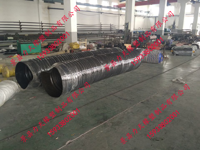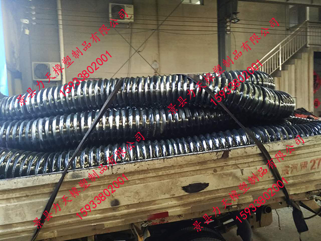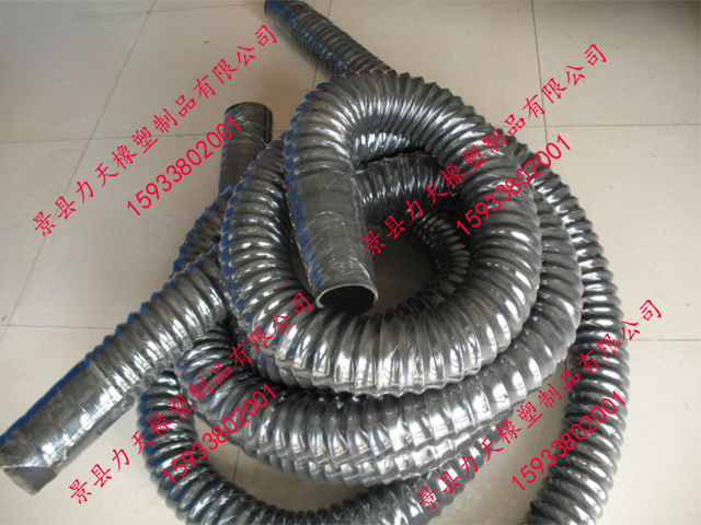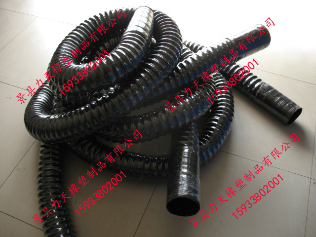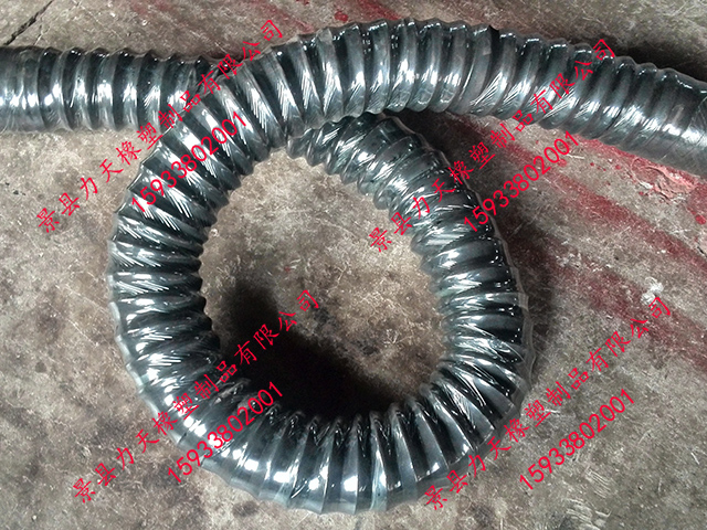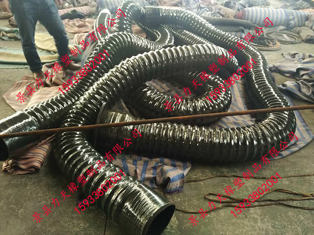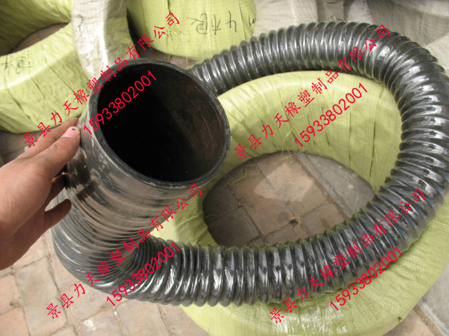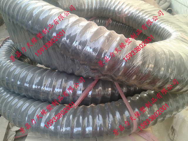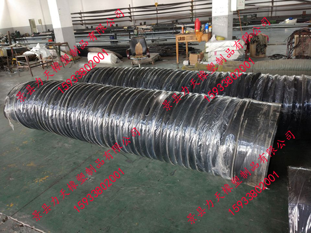 很荣幸为您推荐力天橡塑生产的橡胶风管,其比一般橡胶软管更小的弯曲半径,内置有螺旋钢丝骨架,可以耐真空,在输送易燃粉尘时可内置导静电铜线,及时排出静电。其与市场的同种用途的PVC风管相比具有更好的耐老化性能和耐磨性能,因此具有更长的使用寿命。