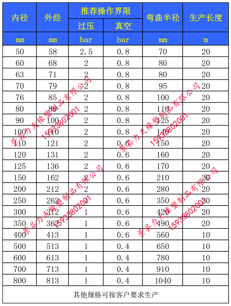产品工作压力:橡胶风管一般只允许工况不高于4bar的低压环境,特殊情况会需要承受一定负压,即真空。
