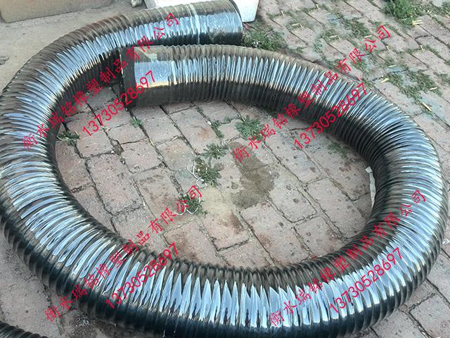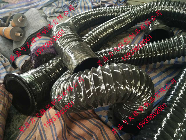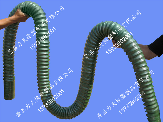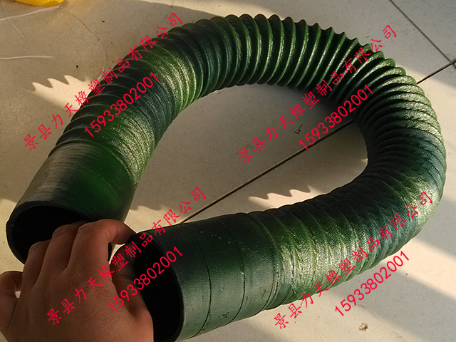 产品优势:具有优异的柔韧性能,比一般橡胶软管具有更小的弯曲半径,内胶层采用**耐热耐腐蚀橡胶,专用于化学气体、热气、尘烟的排风作业,也可用于含固体颗粒的介质;橡胶伸缩软管于一般涤纶、热塑或专用PVC风管相比具有更好的耐老化,耐磨损性能以及不会出现打死结的现象。橡胶风管还可以做阻燃防火导静电处理,使其在输送高温介质时更加安全可靠,橡胶风管是现代工业化学气体、热气、尘烟的排风作业的理想选择。
