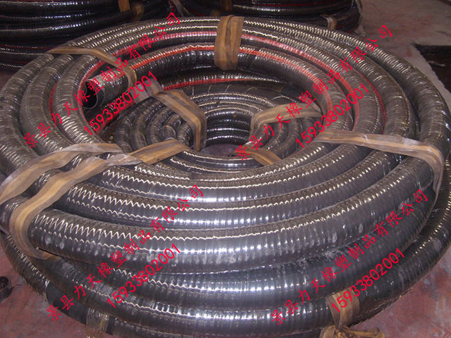 产品结构:由耐磨耐老化内胶层,织物增强层,中间螺旋钢丝骨架层及耐老化外胶层组成
