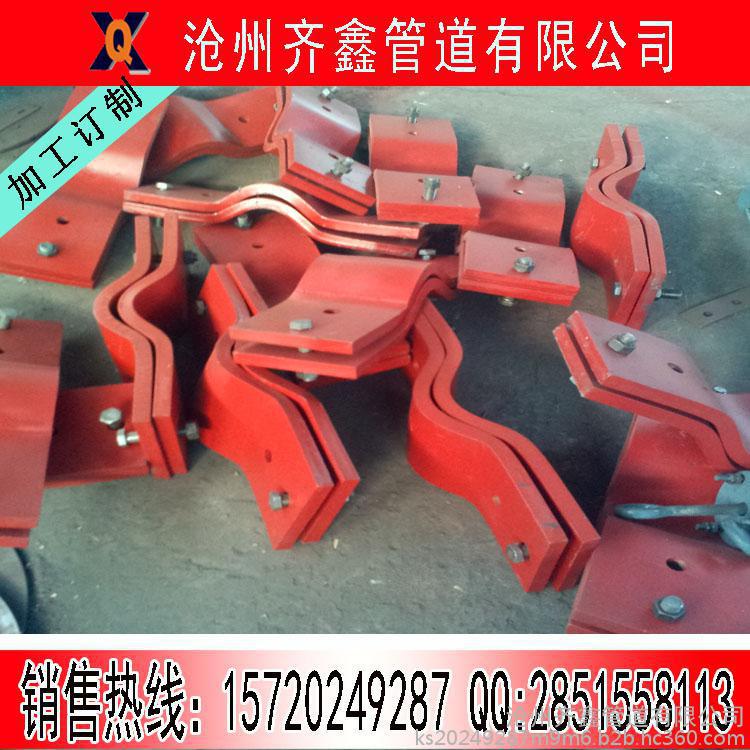 沧州齐鑫管道有限公司 主要生产电厂系列各种规格:D1长管夹,D2三孔管夹,D3双孔短管夹,D4焊接单板,D5焊接双板,D6管夹横担,D7焊接横担,D8管卡横担,D9立管管夹,D10立管短管夹,D11立管焊接单板,D12立管焊接双板,D13横担弹簧用焊接管座,D14横担弹簧用管夹管座,Z1管夹固定支座,Z2焊接固定支座,Z3管夹滑动支座,Z4管夹导向支座,Z5焊接滑动支座,Z6焊接导向支座,Z7管卡,Z8槽钢支座,Z9立管支承板,Z10立管支座,Z11热压弯头托座,Z12循环水支座,Z13循环水托座,L1螺纹拉杆,L2左右螺纹拉杆,L3双孔吊板,L4三孔吊板,L5花兰螺丝,L6吊杆螺纹接头,L7环形耳子,L8U形耳子,L9单向滚动吊板,L10双向滚动吊板,F1六角螺母,F2大角扁螺母,F3垫板,F4.球面垫圈,F5槽钢加强板,F6垫圈,F7焊缝加强板,F8单槽钢吊杆座,F9单向螺杆,F10双头螺杆,F11槽钢助板,F12工字钢助板F13槽钢用方斜助板,F14六角头螺栓.T1单板整定弹簧支吊架,T2双板整定弹簧支吊架,T3上下方整定弹簧支吊架,T4支架整定弹簧支吊架,T5横担整定弹簧支吊架,G11板缝吊杆,G12单孔吊板,G13U形吊板,以及,G21G21到G51根部.