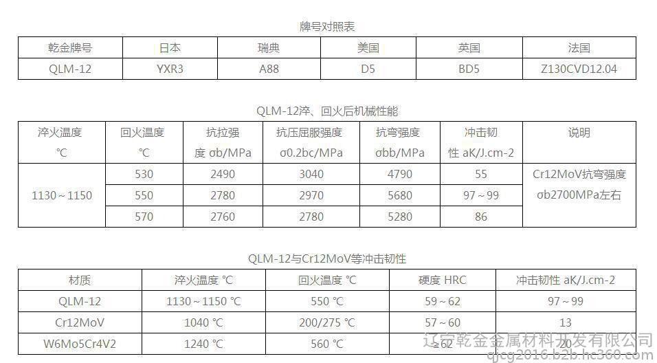 | 品牌 | 乾金超钢QLM-12**韧冷作模具钢 |