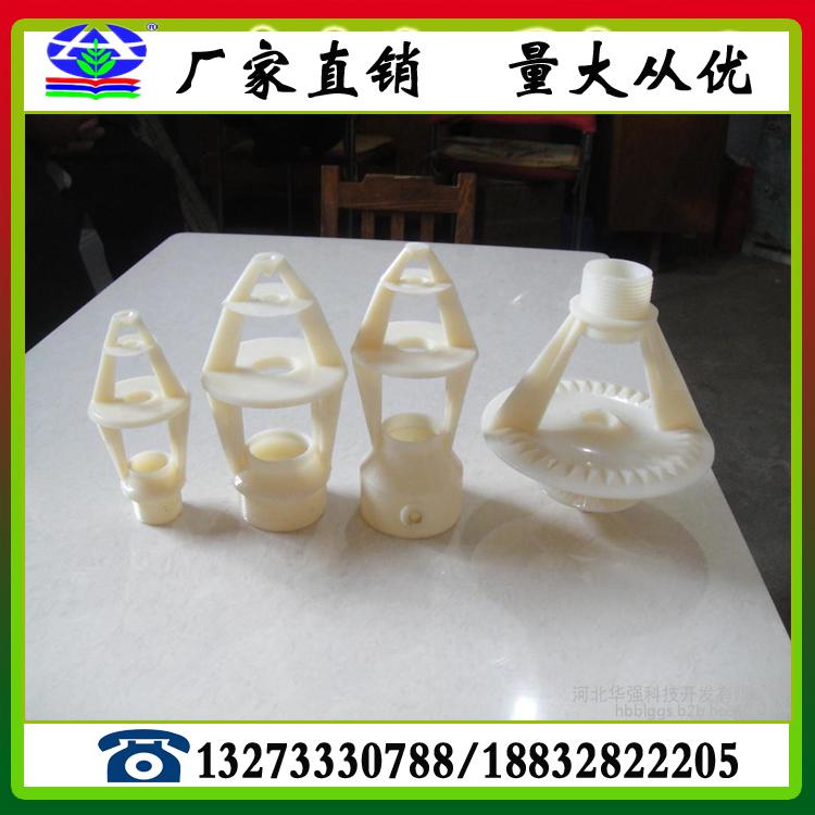 冷却塔用喷头特点:强度高、重量轻,使用水压低,喷淋高度低,配水均匀、溅水效果好,安装维修方便,水量可以调节,散热效果好,特别适用于冷却水。