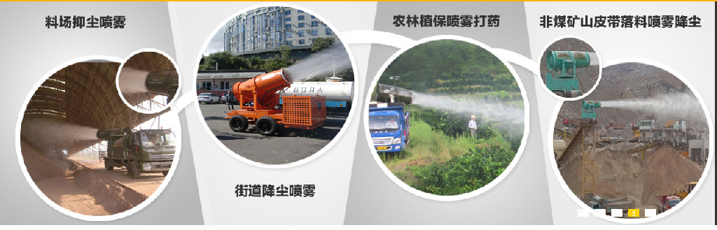2.堆场、储煤仓或全封闭式储存场所、物流园区、集运站、露天煤矿开采、后路面和空中等扬尘污染治理, 3.堆声扬尘治理、所有煤堆、料堆、灰堆、堆场露天装卸作业喷雾排抑尘、喷洒或喷淋稳定剂等抑尘,