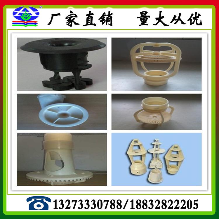 三溅式喷头,具有与配水管相连的承插式(直径48mm、直径60mm规格供选择)接口,承插接口采用钻尾丝固定,在承插接口的下部还依次同轴间隔设置有外径依次变小的大溅水盘、小溅水盘和锥形辟水头