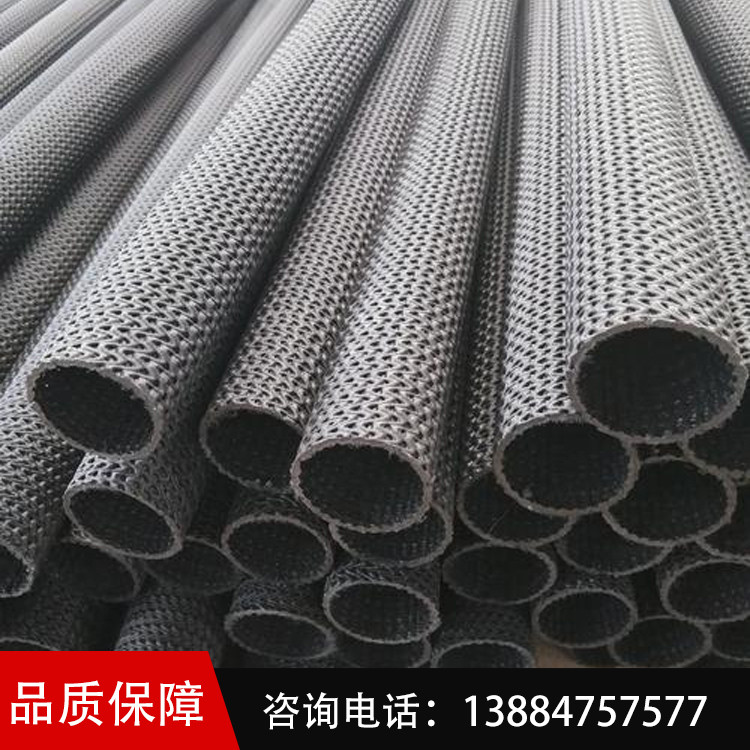| 一、硬式透水管上半部分2/3带有小孔,下半部分1/3为不带孔,能防止地下水发生二次渗漏,迅速把地下水排走。 二、特点:重量轻,易于运输及操作。适应的温度范围广。耐侯性(抗老化)优越,使用寿命极长。抗冲击能力极强,具有优良的抗化学腐蚀能力。 集水能力极强,是其他类似产品的5至10倍。 流体流动速率快,是相同直径的钢广混凝土或波纹管的2到3倍。 将集水迅速排走,避免水土流失。底部为无孔部分,利于集水迅速排出,防止二次渗漏。 三、产品应用于铁路建设、公路建设,机场跑道,高尔夫球场,足球场,大型草坪,园林绿化,高速公路,垃圾填埋场、护坡挡土墙、隧道等大型疏导地下透水工程。 一、软式透水管是以防锈弹簧圈支撑管体,形成高抗压软式结构,无纺布内衬过滤,使泥砂杂质不能进入管内,从而达到净渗水的功能。涤纶丝外绕祉覆层具有优良吸水性,能迅速收集土体中多余水份。橡胶筋使管壁被覆层与弹簧钢圈管体成为有机一体,具有很好的全方位透水功能,渗透水顺利渗入管内,而泥砂杂质被阻挡在管外,从而达到透水、过滤、排水一气呵成之目的。它创造性地利用毛细渗透的原理,周身全方位透水,使渗透、过滤、排水快速有效,一气呵成。并具有透水面积大、抗压强度高、铺设要求低、安装连接简单、结构轻便耐用,综合成本低等优点。 二、透水管特点具有:
