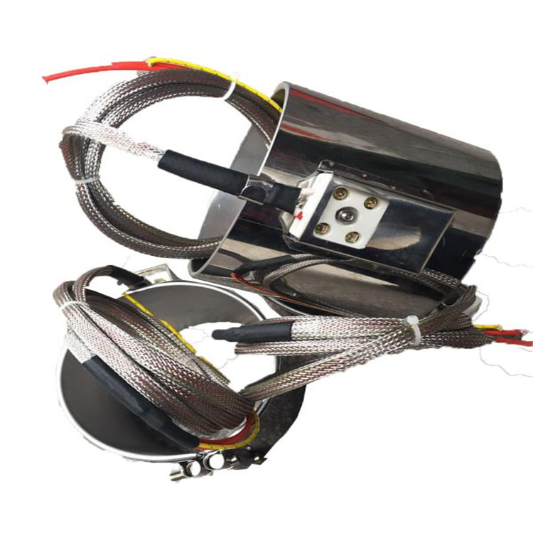 不锈钢加热圈技术特性: 1、其使用温度一般在摄氏150~450度之间,不锈钢云母加热器特点具有长寿命、保温性能好、机械性能强、耐腐蚀、抗磁场等优点。 2、是用电热丝缠绕于云母骨架作为发热体,外面包覆金属外壳和接线柱而成,可根据用户需求设计制造成各种形状的加热圈、板,正常表明负荷可达到2.5~3瓦/平方厘米。传统的不锈钢加热器,它的可靠性与经济性已长期得到承认,广泛应用于挤出机、注塑机、热压模板、模具、塑料机械、模头、电缆机械、化工、橡胶、石油等设备上。 五、使用注意事项: 1)工作电压不得超过额定值的10%; 2)接线部分放在加热层、保温层以外,外壳应有效接地; 3)云母加热器应放在干燥处、若因长期放置,绝缘电阻低于1Mù时,可在摄氏200度左右的烘箱中烘烤5-6小时,即可恢复正常。