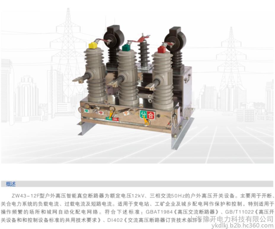 豫开ZW43-12F/630A高压弹簧式真空断路器 ZW43-12G真空断路器 高压断路器