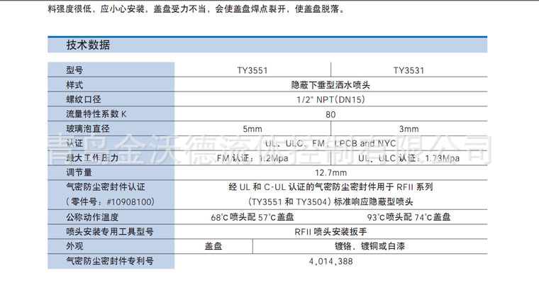具体泰科消防水喷淋灭火产品规格型号与选型报价请发电子邮件与我们联系。
