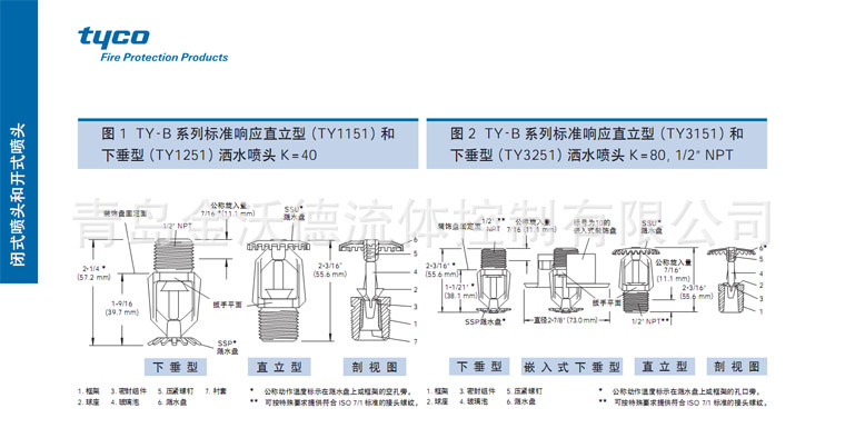 TY-B 系列标准响应直立型 (TY1151) 和下垂型 (TY1251) 洒水喷头 K=40