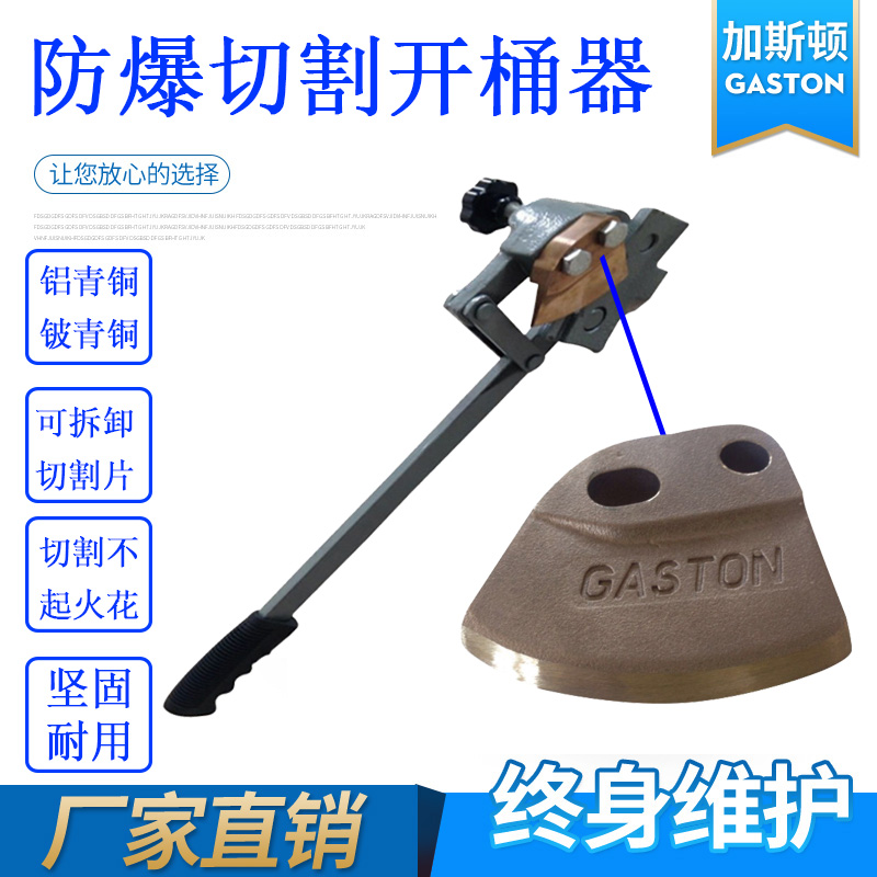 防爆开桶器特点:防爆开桶器也叫防爆开桶扳手,是一种打开桶的工具,装有易燃物的铁桶在装满或倒干的情况下要开盖,都不能出现任何火花, 通过使用这种工具可以简易、安全、快速打开55加仑(200公升)金属桶盖,并且在打开的过程中不会因为撬动和切割产生火花,开桶后,桶保持干净、完整。桶可再回收利用,开桶器刀片可更换。