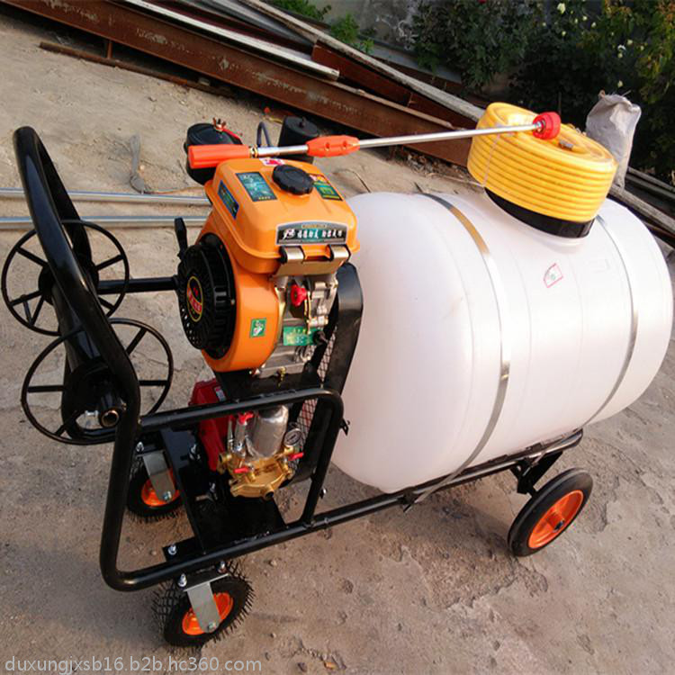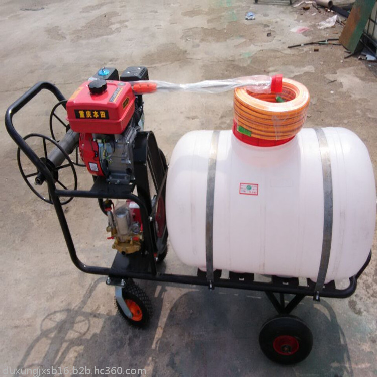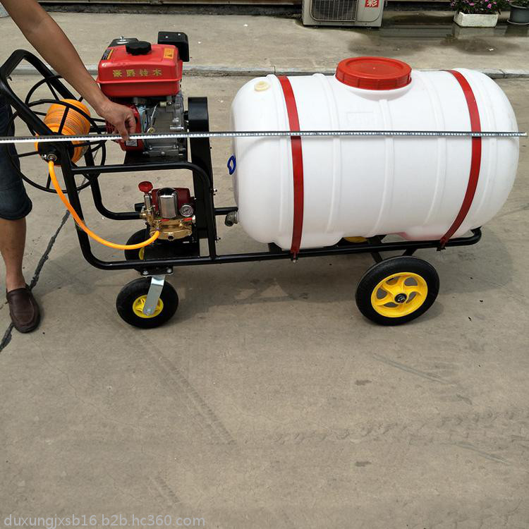 高压动力打药车特点:启动方便,结构紧凑,运输便利,射程远,雾化效果好,作业范围大,特有回液搅拌器,喷施效果佳,维护简便,使用寿命长。