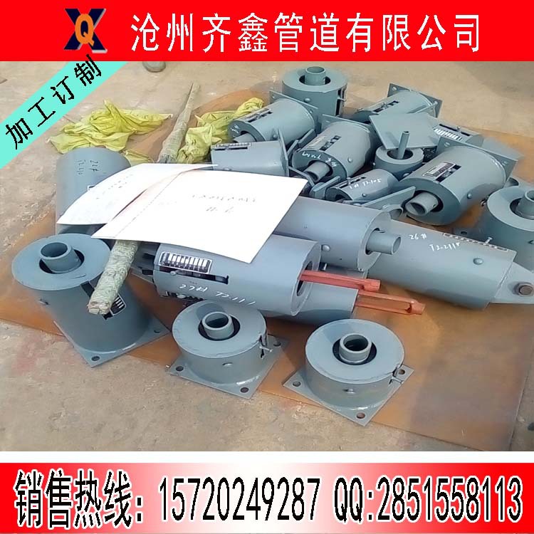???????????????? 齐鑫管道主要生产弹簧支吊架、管道支座、电厂配件及人孔、防爆门、风门等产品的制作,厂家按标准图集或是用户来图加工均可制作,符合客户要求,确保安装合适,及良好的售后服务,请放心采购,欢迎您的来电咨询。