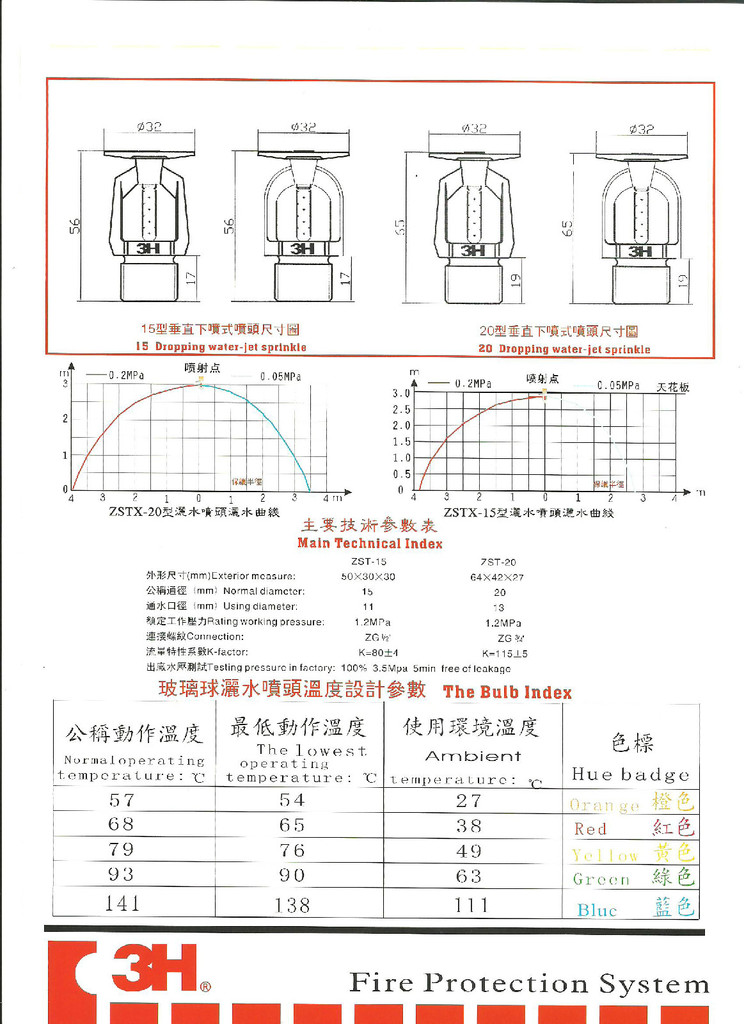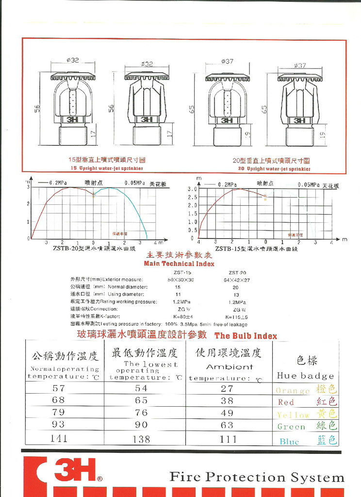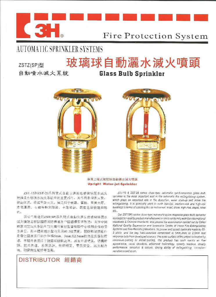 ZST-15 系列閉式自動快速反應玻璃球灑水滅火噴頭是自動噴水滅火系統中的主要部件,其作用是探測火警,啓動水流,撲滅早期火灾。廣泛用于餐廳、賓館、商業大厦、倉儲庫房、石礦等輕危險級、中危險級、嚴重危險級建築物內。我公司製造的ZST(SP)系列閉式自動快速反應玻璃球灑水滅火噴頭是根據國際消防標準及中國國標要求製造;且經中國國家固定滅火系統和耐火構件質量監督檢驗中心檢測合格的優良産品。其本體和濺水盤均采用80-3矽黃銅,關鍵熱敏感元件是德國進口,本體外表進行了鍍鉻或鍍鎳處理。具有外型精美,結構新穎,技術先進、反應迅速、性能穩定、靈敏安全、滅火能力强、耐腐蝕性能好等優點。